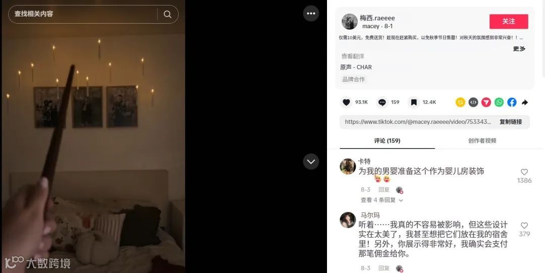 除此之外,所有含有万圣节元素的商品,销量及热度都稳步上升。7月22日TikTok一位博主发布了一段在装饰含有万圣节元素的饰品,并且配文“Halloween decorations are never too early(万圣节装饰永远不会太早)”引起众多网友共鸣: