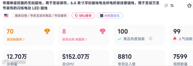 根据后台数据,该无焰蜡烛灯7月份的销量增长率为6937.56%。这也体现出了美国人对万圣节的热情与期待