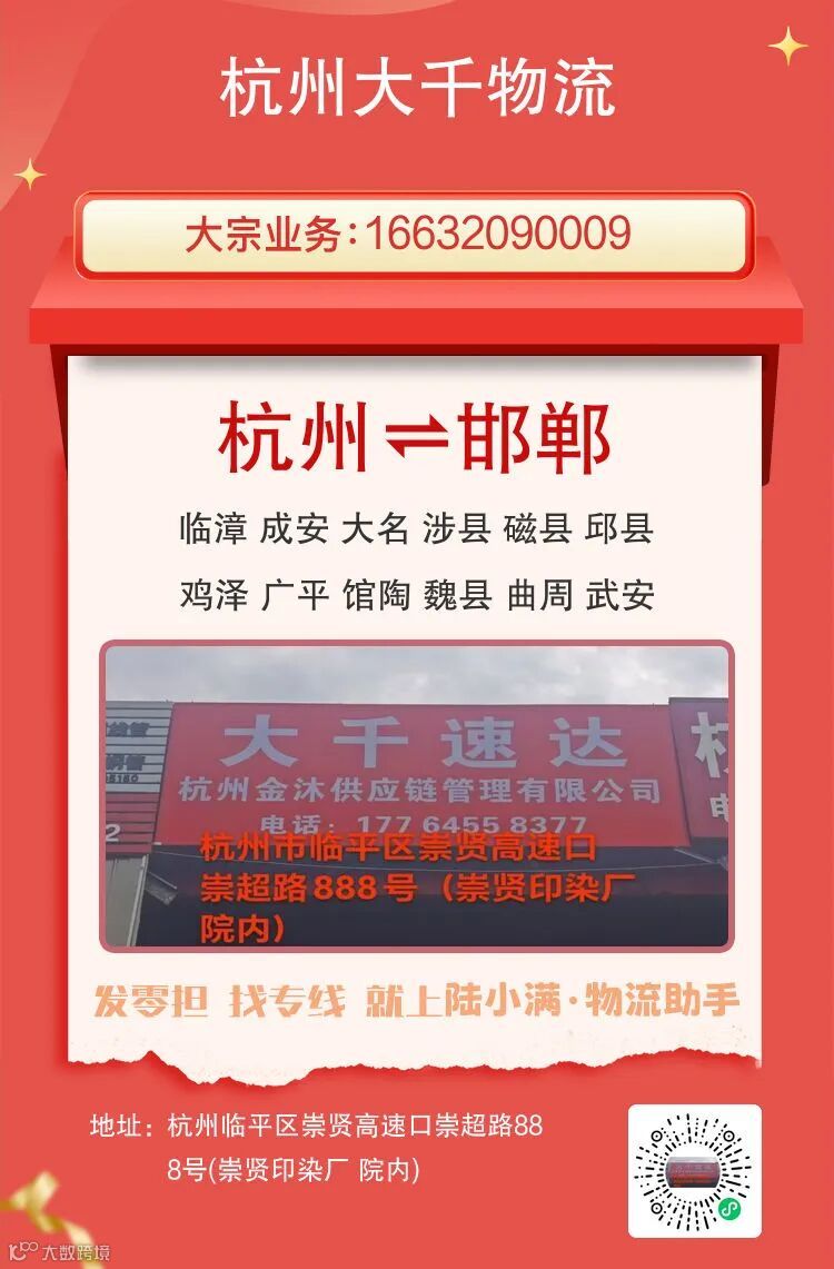 杭州物流专线推荐 杭州到邯郸物流专线-杭州大千物流