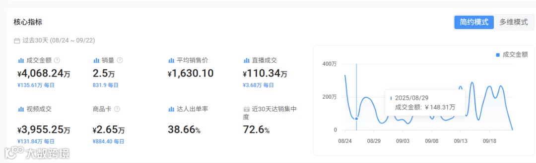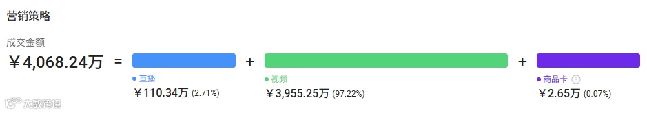 这款冷藏箱是所属店铺Ninja Kitchen Us的销冠王,观察最新一个月销售数据,销售额达3955.25万元,主要来自短视频,占比达97.22%,直播占比和商品卡占比分别为2.71%、0.07%。