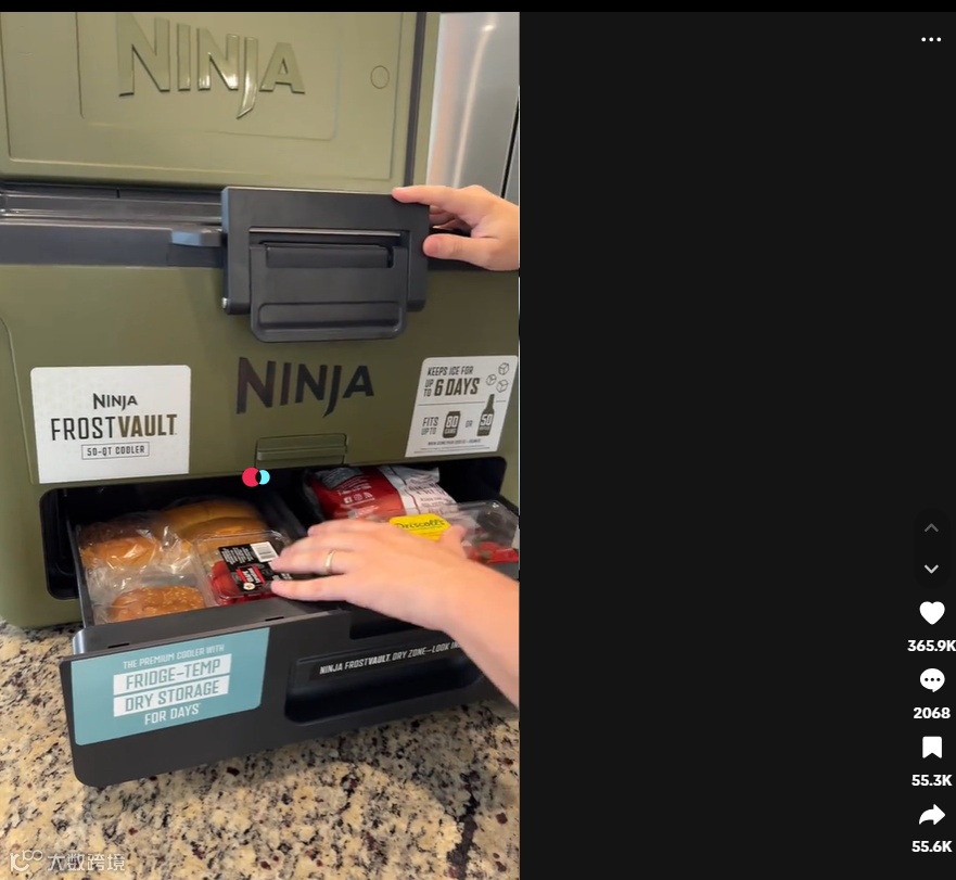 Ninja冷藏箱搭载FROSTVAULT 冷藏技术,可以将冷气直接输送至0℃以下无融水存储,解决传统冷藏箱“食材浸湿” 痛点,3 英寸隔热层能让食物数天内处于 40°F 以下的安全温度。