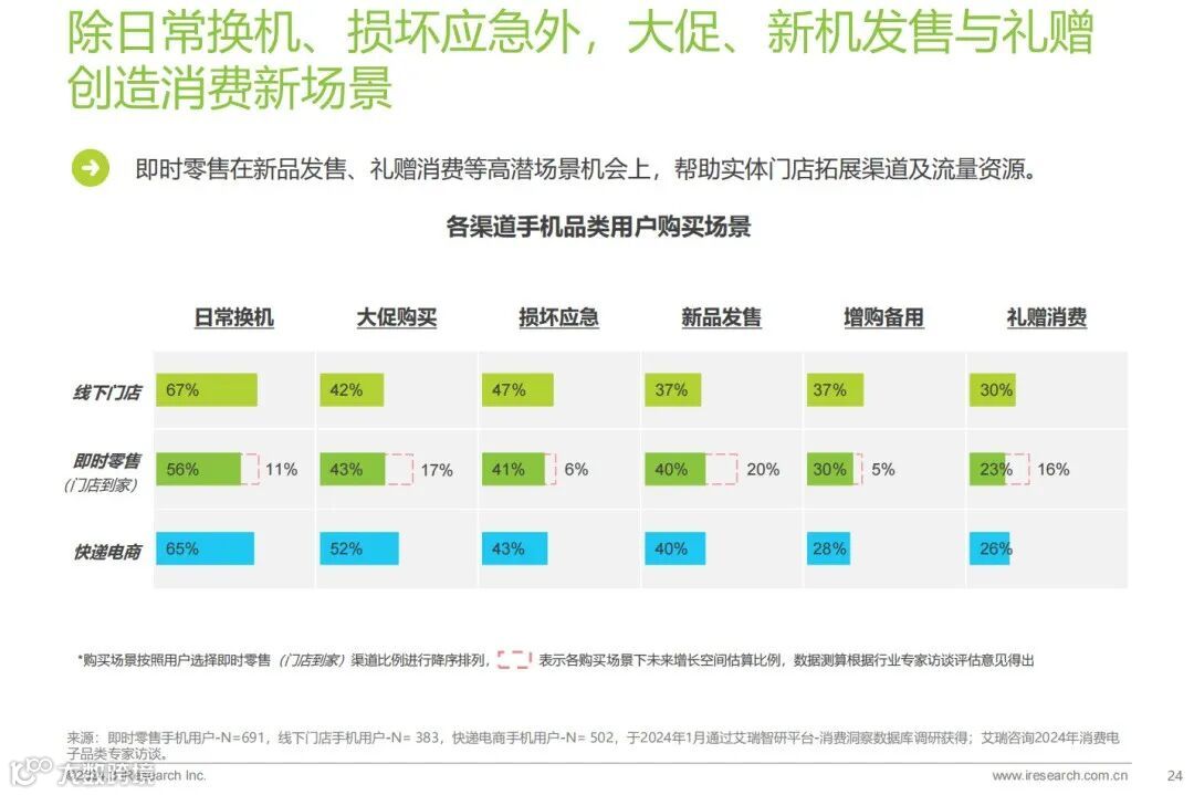 报告显示,3成即时零售手机用户偏好中高价位手机,购机均价4936元,高于非即时零售渠道的4571元。