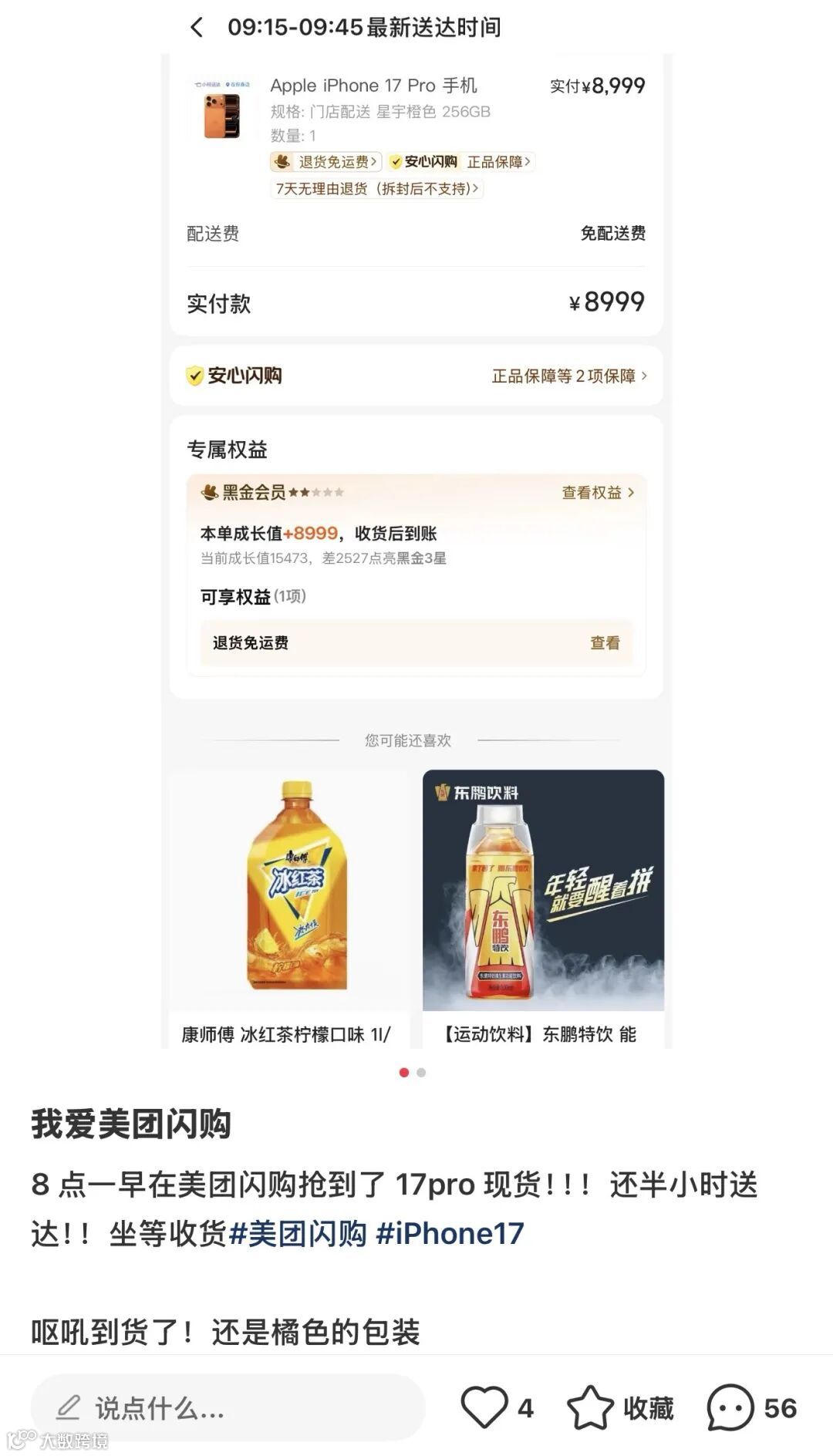 小红书和朋友圈纷纷被橙色新机刷屏,更有意思的是,不少人晒出新手机的同时,旁边还有闪购袋子。