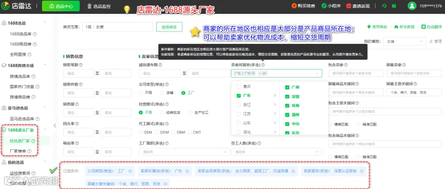 想要更加全面的了解供应商,可以通过店雷达-找优质厂家,帮助商家发现1688近期销量好的源头厂家,以及近期增长趋势高的店铺,拿到一手货源,综合厂家的飙升幅度和经营信息,挖掘近端时间保持良好的运营和服务的供应商。