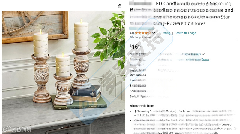 本案是长沙卖家Caifa Jiang于2023年10月在美国注册并下证的一款无焰LED电子蜡烛专利,麦家支持通过检索发现,此类蜡烛在亚马逊有着极为不错的销售业绩,尤其是在圣诞等节日前夕,销量更是喜人。然而,背后的专利情况,也不容忽视,望广大卖家速速排查。