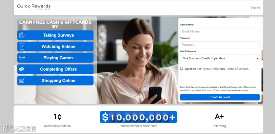 兑换方式:网站支持通过 PayPal 提现,也可选择兑换礼品卡