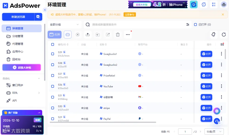 同一设备 / 网络切换账号易被限制,建议用 AdsPower,为每个账号搭建独立指纹与 IP 环境,实现 “一账号一隔离环境”,其标签功能还能分类管理账号,方便批量运营。