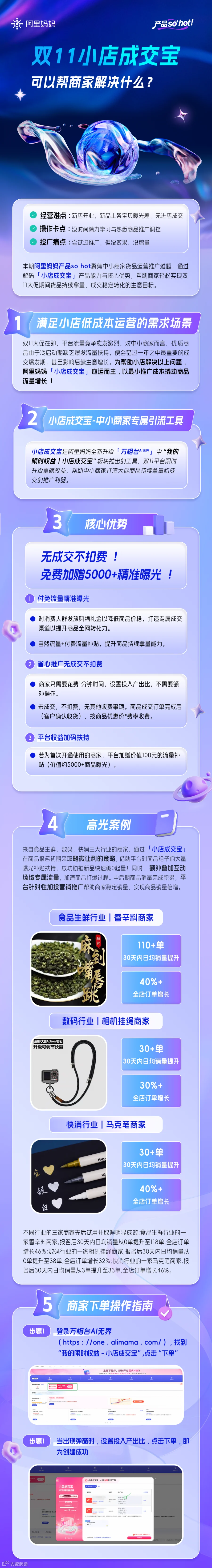 双11大促即将开启,流量竞争愈发激烈,针对新手小白商家、或无太多推广预算的商家经营难题,阿里妈妈重磅推出「小店成交宝」,专属成交渠道与付免流量共助新品加速冷启打爆,更有平台限时加赠流量补贴,高效拿量促转成交。