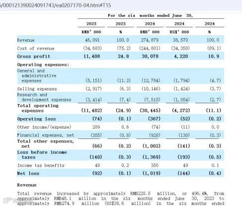 最新财报显示:截至2024年6月30日,企业上半年度营收为2.749亿元,年营收近7亿元。