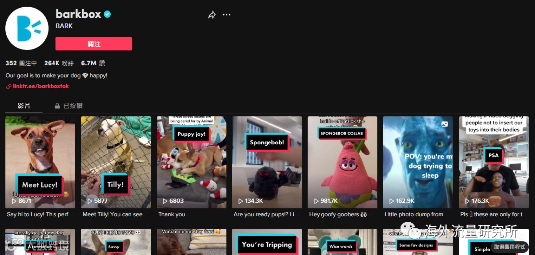 从大家熟悉的Facebook、Youtube、Twitter、Instagram,到新兴的短视频平台TikTok,Barkbox都进行了战略性的布局。