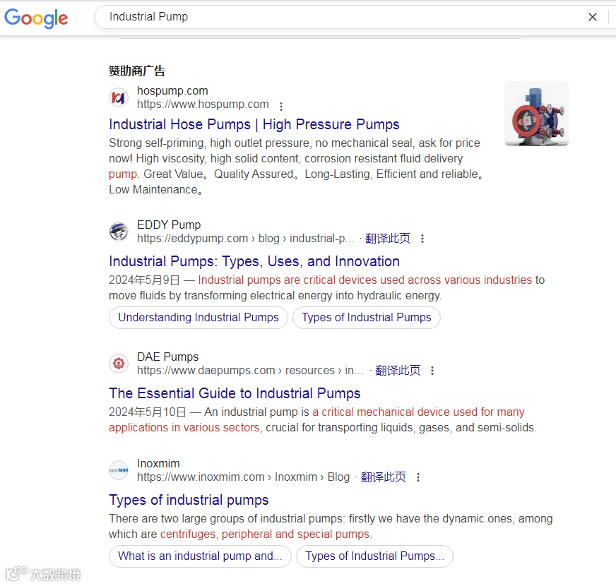 比如说,我是化工行业采购,比起工业泵(industrial pumps),我更倾向于搜索ATEX认证的隔膜泵(ATEX certified diaphragm pumps)。