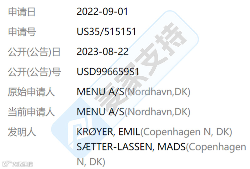 美国外观专利号:USD996659S1