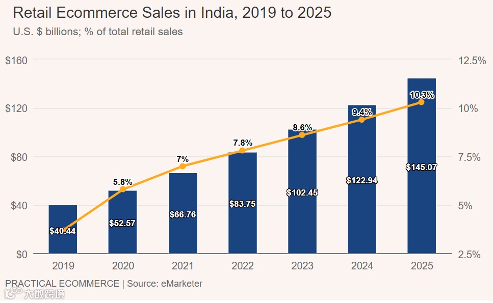 由于人口众多,印度一直是一个具有吸引力的电子商务市场,即使只有相对较少的人口能够接触到互联网或拥有足够的收入,因为根据世界银行的数据,只有3%的人在印度拥有信用卡。