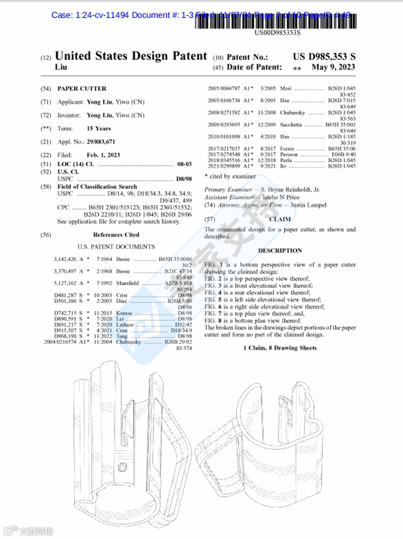 前有David律所代理的Little ELF礼品包装切割机专利+商标+版权全方位维权,后又有国人卖家Wang Pengfei针对其在美国注册专利的三个包装纸切割工具