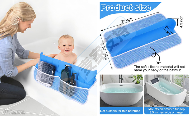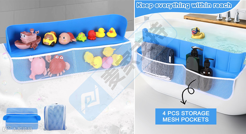 这款浴缸防溅罩不仅可以放入卫浴柜中为浴缸提供全面保护,而且还在产品的两侧设计了网状储物袋,同时,还配合了8个一体成型的集成吸盘,确保能够牢固地固定在原位,不会因为使用时间而脱落。