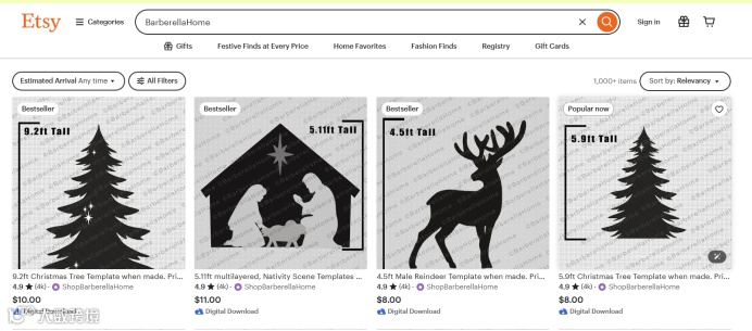 其圣诞元素模板来自BarberellaHome,创始人Kim对DIY和手工艺品极大热爱,以经济又创意的方式,将个人钟爱的风格和元素融入家居环境,创立此品牌。