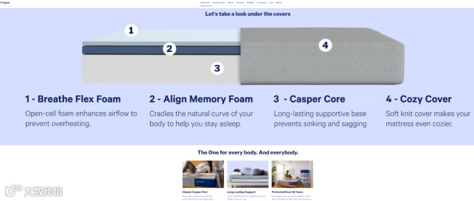 美国床垫独角兽品牌Casper自上线以来,28天销售额超100万美元,迅速抢占美国床垫市场。