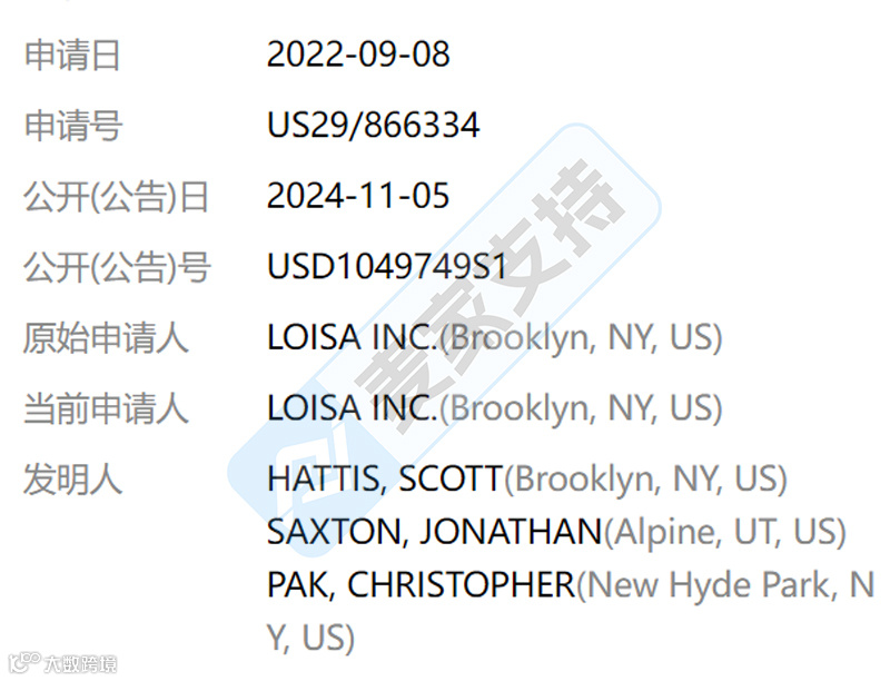 美国外观专利号:USD1049749S1