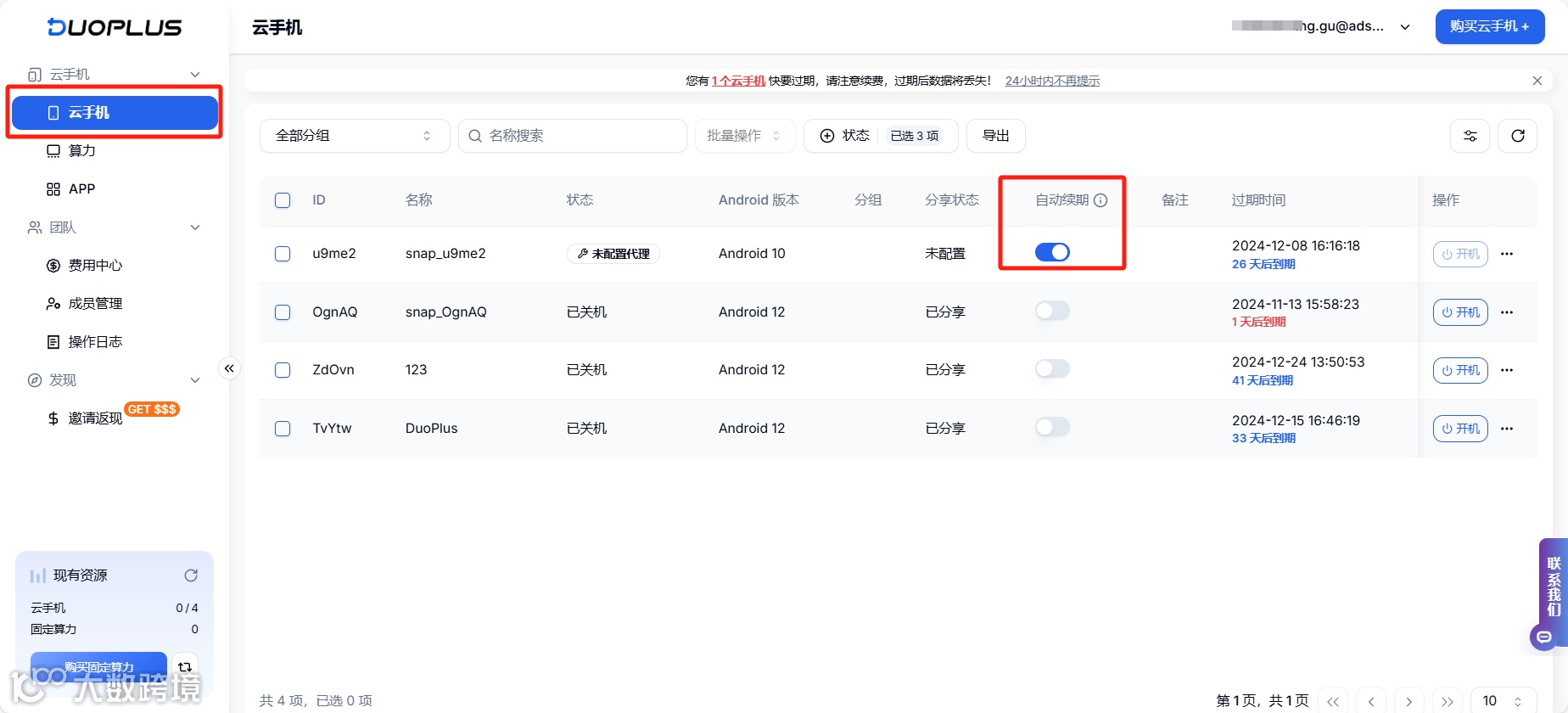 自动续费:DuoPlus可对云手机进行自动续费操作