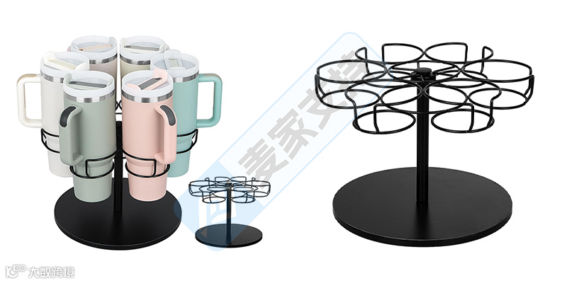 此架子专为带手柄的Stanley 40盎司玻璃杯设计,有专用的杯子手柄槽,可安全方便地存放6个瓶子。