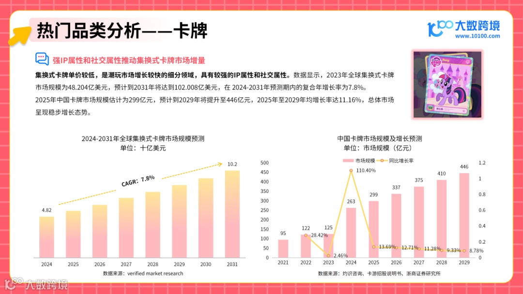 2023年全球集换式卡牌市场规模为48.2亿美元,预计到2031将增长至102亿美元,年复合增长率7.8%。