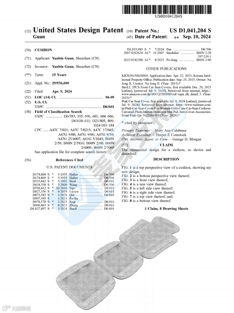 本案涉及一款小众产品专利维权,涉及浴室软垫的一体式外观设计,于2024年9月下证美国专利,原告Shenzhen Yibaifen E-Commerce Co., Ltd. 通过转让的方式获得所有权。麦家支持检索发现,产品虽然小众,但是跨境电商平台不少店铺在售,需尽快排查!