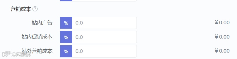 站内广告前期投入可以设置为50%(广告成本占商品售价的比例),通过此方式查看前期投入成本。