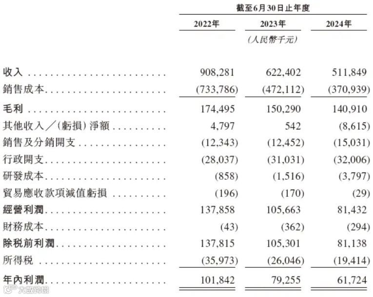 财务方面,2022~2024年,企业营业收入分别为9.08亿元、6.22亿元、5.12亿元;相应的净利润分别为人民币1.02亿、0.79亿和0.62亿元。