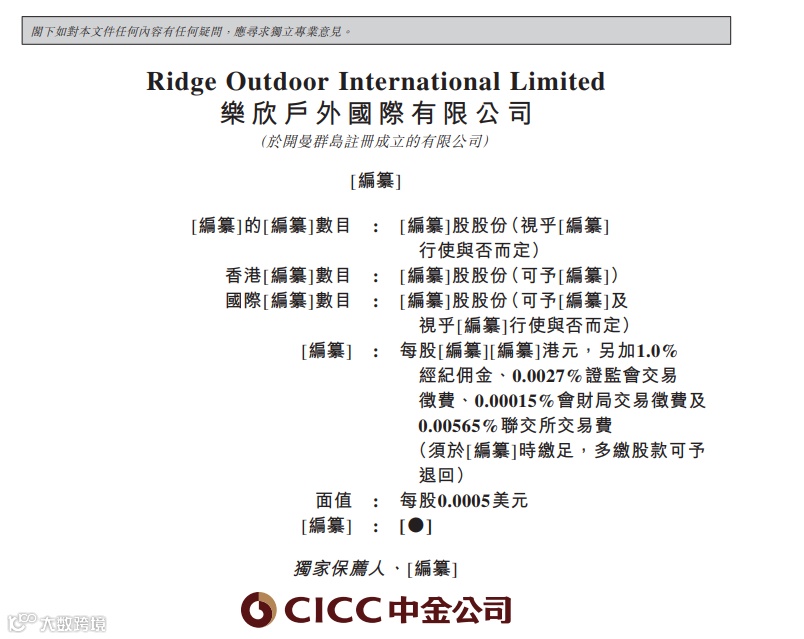 11月15日,乐欣户外国际有限公司向港交所主板提交上市申请,中金公司为独家保荐人。