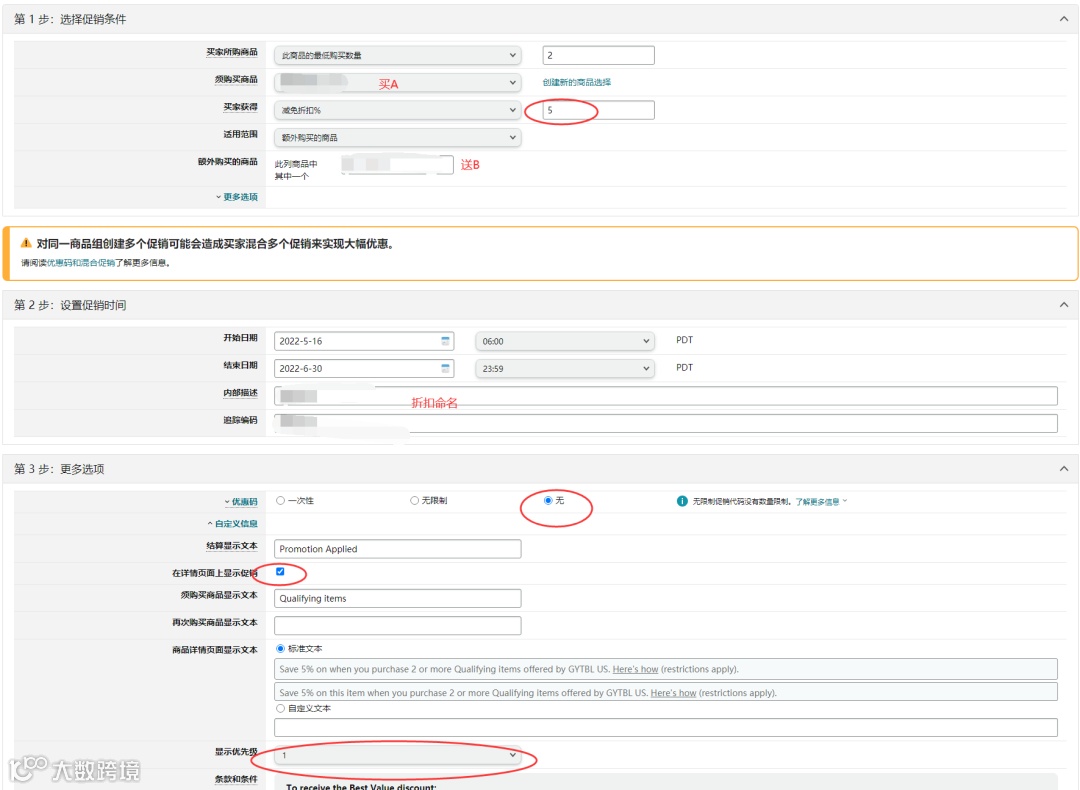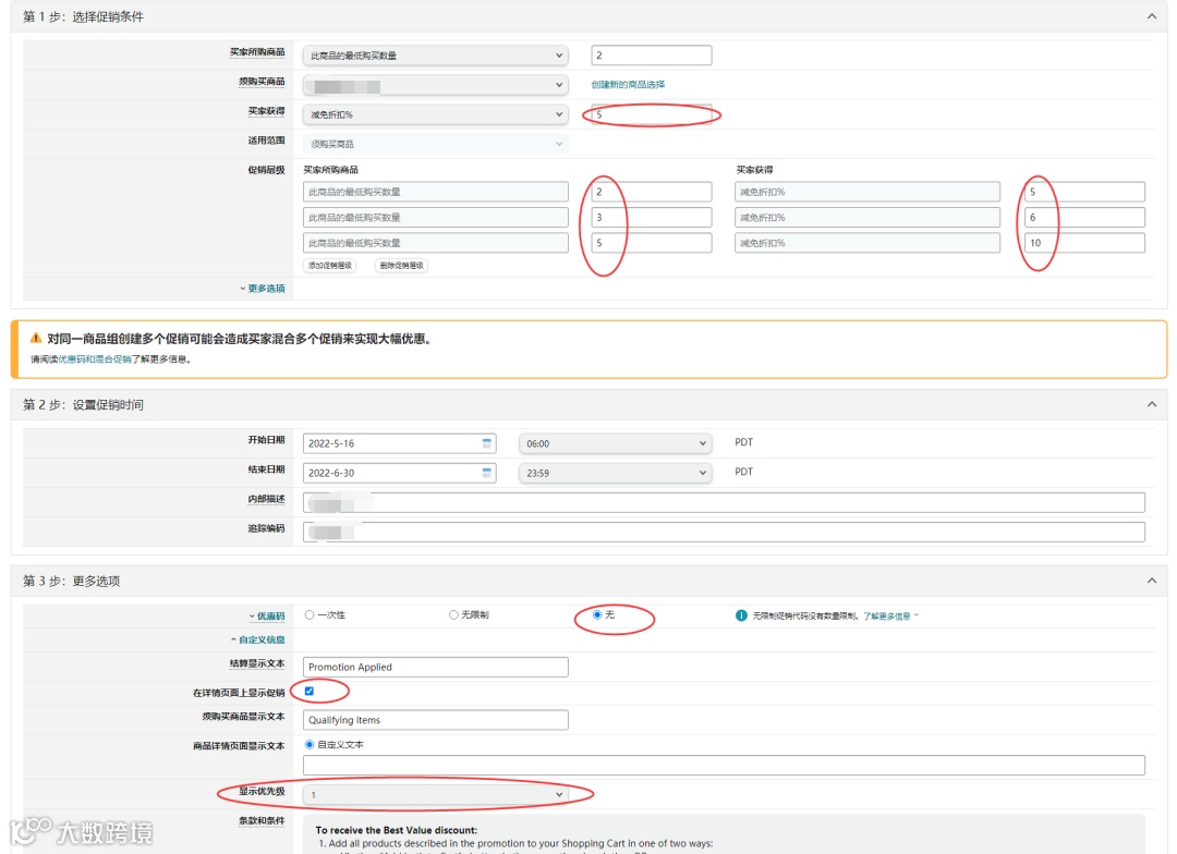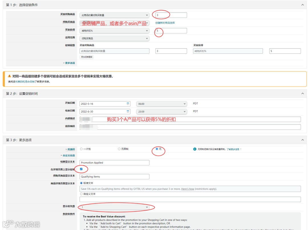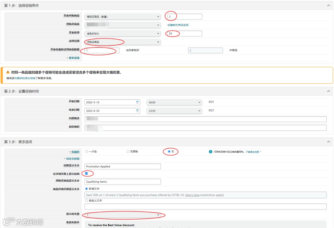 3. 后面几个步骤,日期,内部描述命名以及优惠码选择和优先级等等,都和小黄标的选择是一样的,这里就不再赘述了,以免大家看多了反而混淆;