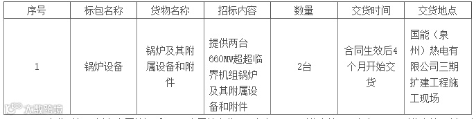 2.1.4交货地点:国能(泉州)热电有限公司三期扩建工程施工现场。