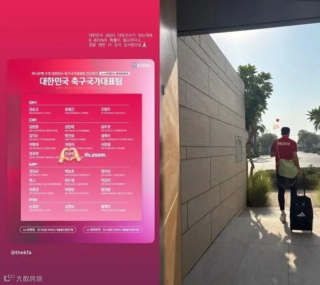 이어 조유민과 고급 식당에서 저녁을 먹는 근황을 공유한 그는 대한민국 축구국가대표팀 명단을 공유했다.