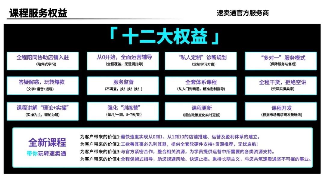 手把手教你完成店铺注册、运费设置、产品上架与推广引流,每日实时答疑(文字沟通、电话指导、远程+语音指导),帮你快速搭建可复制的运营体系,节省试错成本,助力新店快速冷启动!