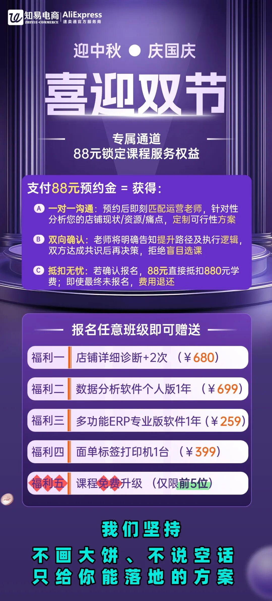 再次感谢各位的支持!本期优惠,特别是 【预交88元与老师1对1连线】 的专属福利,活动结束后将下架,所以有需要提升的商家要抓紧了!