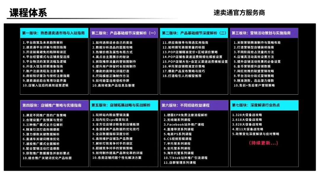 每月1-2次专题直播(每期5-7天),包含运营进阶与平台新政策/新玩法,所有训练营在学习期内均免费参与。