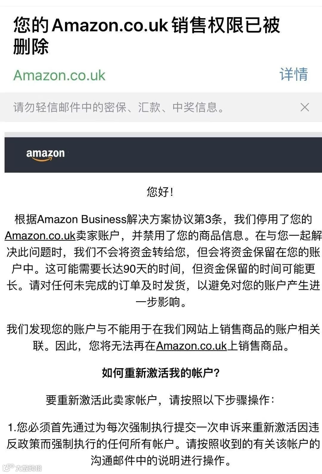 例如:卖家已经开了欧洲、北美、日本,正常售卖。用这套资料开通中东站,结果遇到了审核,这时其他正常售卖的站点收到关联邮件。(一般而言,将中东站问题解决后,其他账号也会解封,这些都是基于没有其他关联问题的前提)。