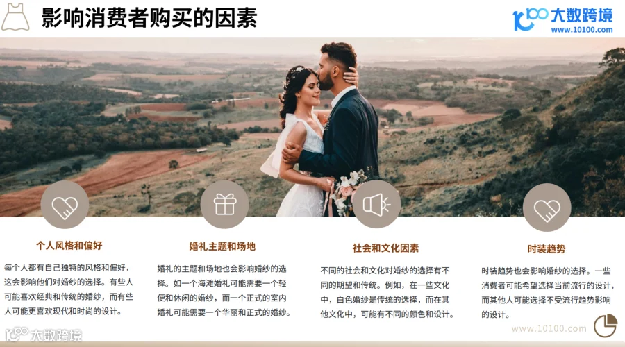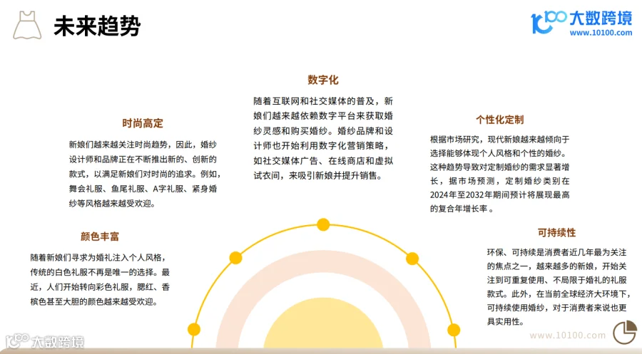 随着消费者婚礼仪式和场景的多元化,对婚纱礼服需求的变化和审美也在不断变化。轻便型、bulingbuling、线条感婚纱礼服会是未来的主流趋势,既彰显了混合传统与现代审美的设计理念,也确保了每位新娘礼服的独特性与时尚感。例如,德国女性对婚纱风格的偏好多样,其中长款带薄纱的婚纱最受欢迎。
