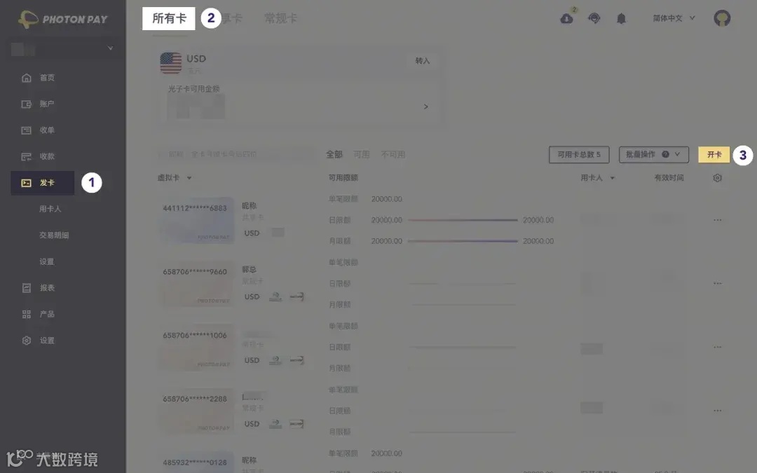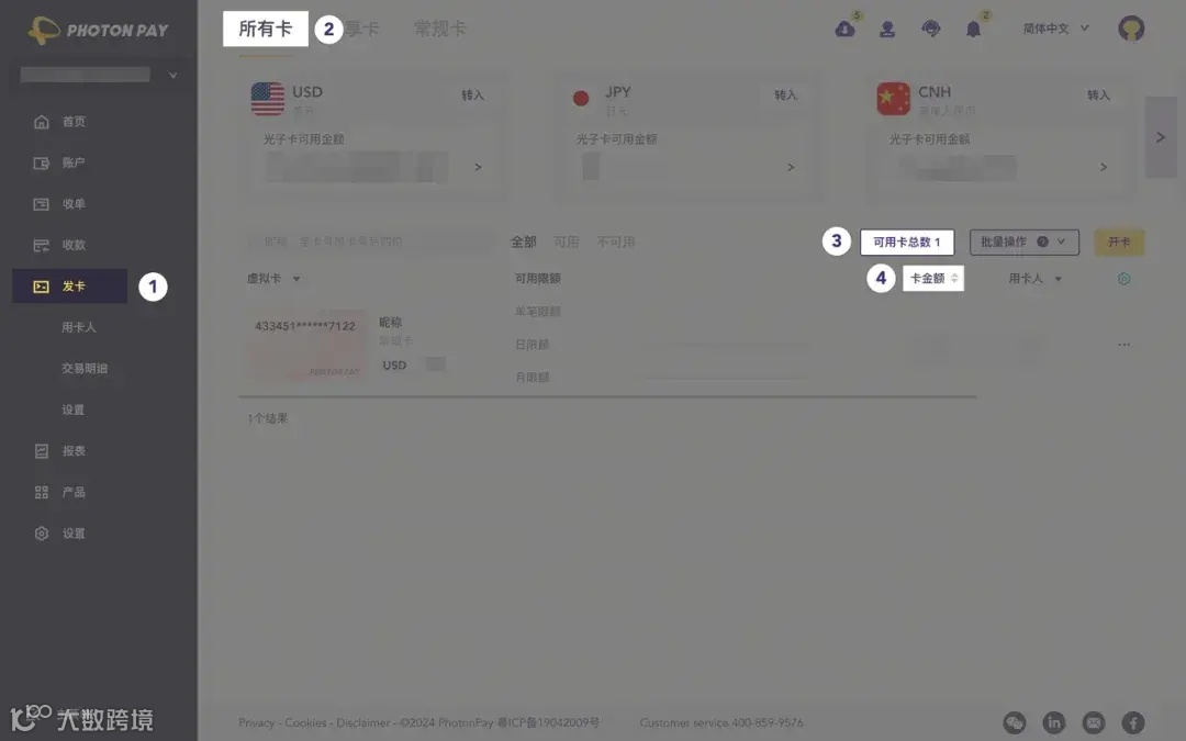 PhotonPay光子易提供「在线批量快速开卡」服务,拥有光子易(PhotonPay)账户,即可在后台快速开卡,操作简单方便。光子卡Photon Card与PhotonPay光子易全球多币种账户直连,开卡即用,当所需币种的可用金额不足,允许按照设定的扣款币种账户和顺序,自动将您其他币种的可用金额以极优汇率换汇为卡付款币种,可以有效减少汇率损失,为您的交易提供更高效、更具性价比的服务支持。目前,光子卡Photon Card支持60+币种支付至全球180+个国家和地区,无论身处何地,只需轻点指尖,即可实现全球畅付。