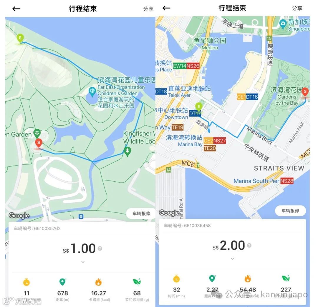 以市中心地铁站到滨海湾花园为例,全程约2.27公里,骑行时间为32分钟,费用仅为2新币;环滨海湾骑行一圈也只需花费1新币,经济且环保。