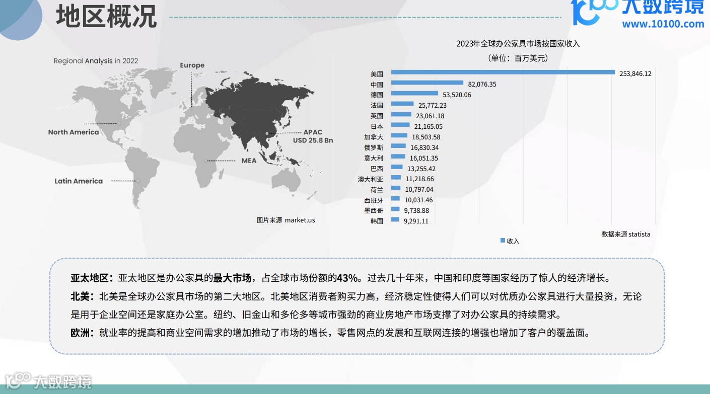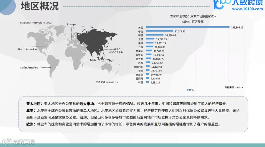 - 市场概况:欧洲是全球办公家具市场的重要组成部分,占全球市场份额的23%。
