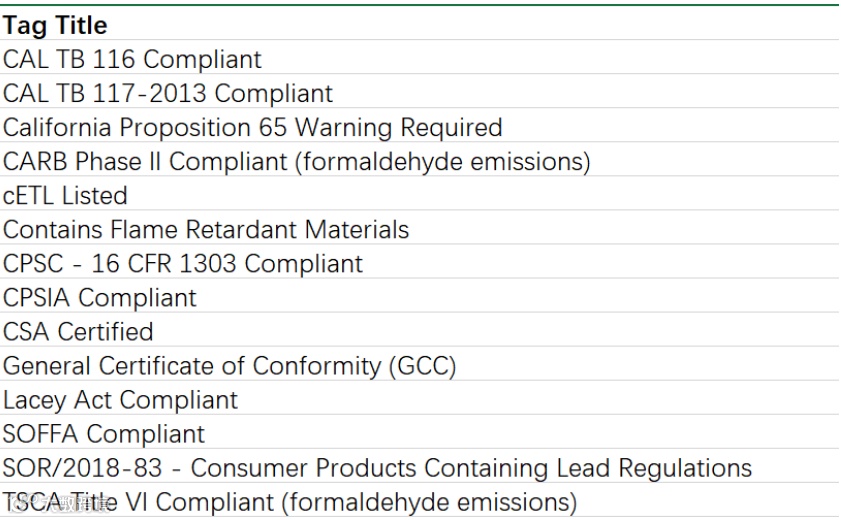 拿厨房用品举例,下面这个表就是厨房用品类目可以测的项目,这些编号,对应检测不同的材料或者特性功能,这些编号多半是一些法案的名字。我们不是搞检测的多半看不懂,你只需要把这个拿给检测机构看就可以了,任何美国CPSC(Consumer Product Safety Commission)认可的检测机构都可以。CPSC是美国的消费品安全委员会,有点相当于我们国家的质检总局,给美国消费者日常生活中的用品发起制定各种标准规范,虽然是个独立机构,但实际作用和权力也跟一个联邦机构有点类似,不是什么随便的单位。所以平台这么要求,是保护平台自己,也是保护卖家