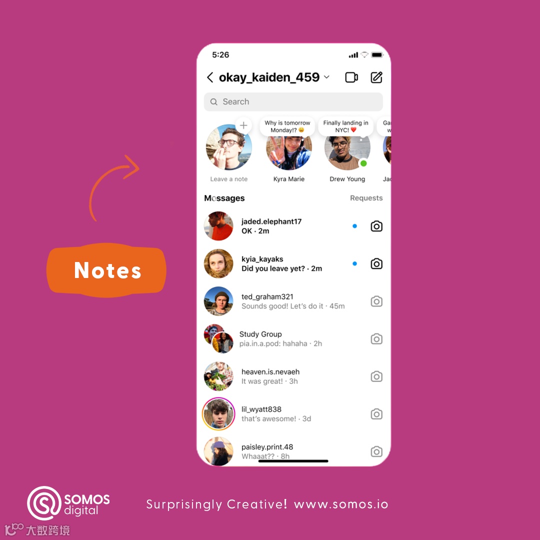 Instagram已经在一些国家的私信中测试了“备注”功能。会逐步推广到更多的国家(比如日本和欧洲)。