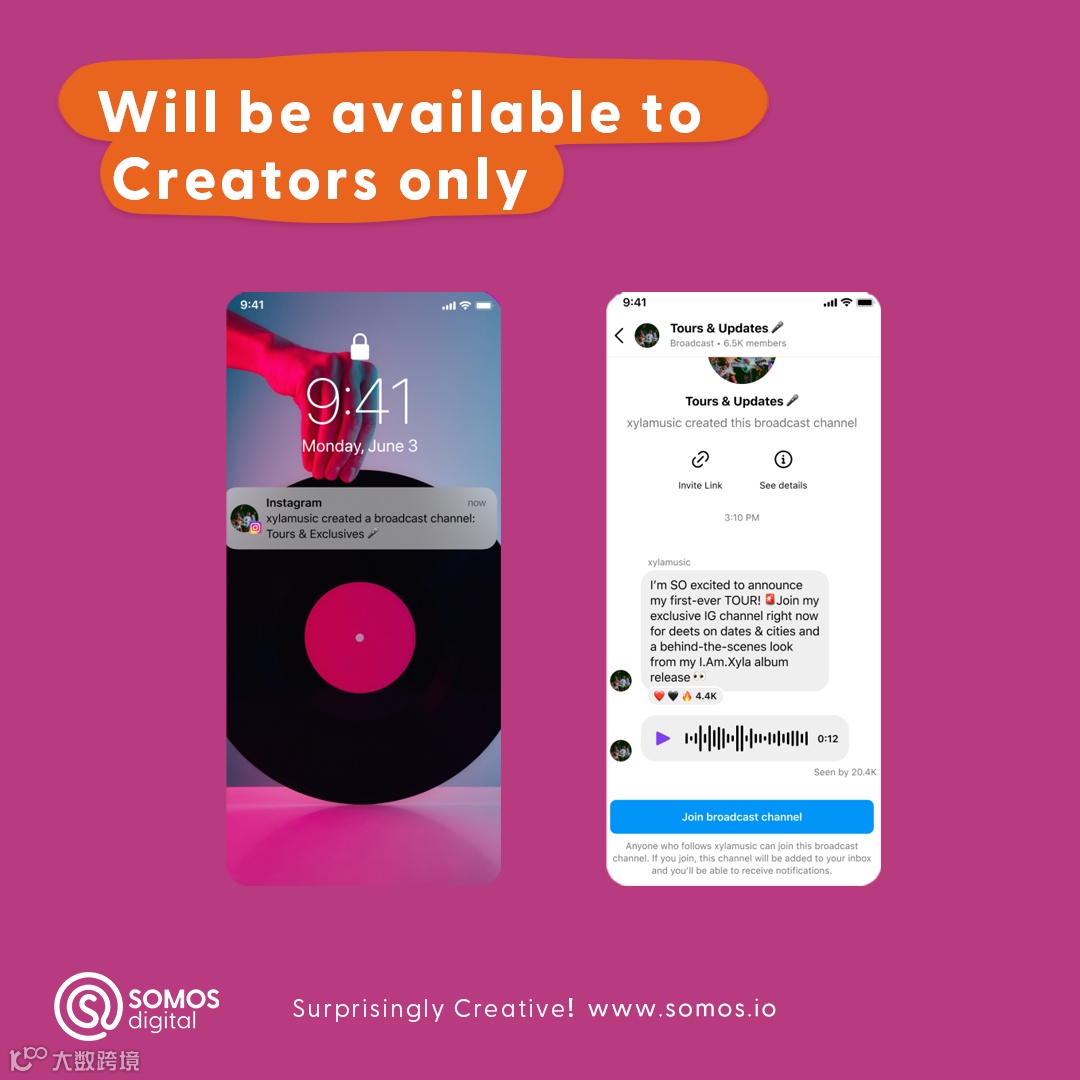 Instagram表示,这项功能目前只对创作者开放,它将允许你向你的关注者群发消息。