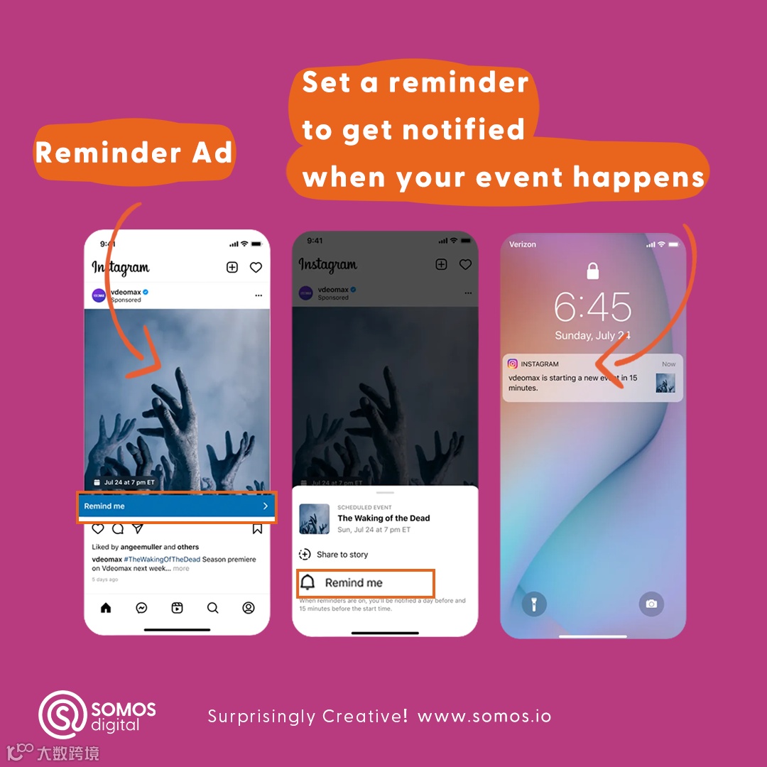 如果你喜欢在Instagram上创建广告,那一定要注意此功能的更新。你现在可以创建一个有“提醒”功能的广告。比如,你正在宣传一个活动,或是一个产品发布会、或者是在卖货。设定事件发生的日期和时间。当用户看到你的广告时,可以设置一个提醒,以便能及时赶上你的活动。