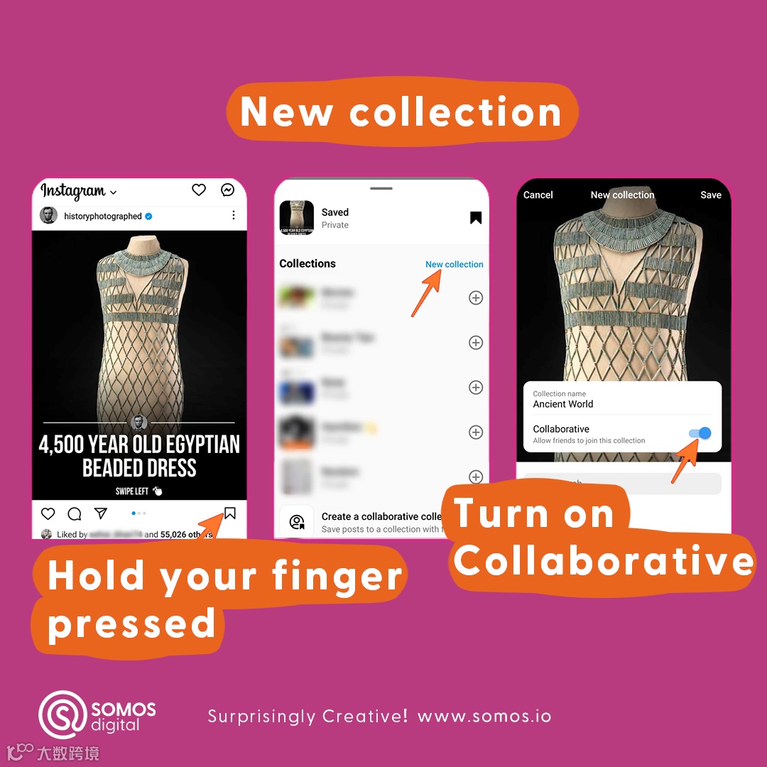 现在你可以和你的朋友同时创建“Collections”“收藏夹”,并将你们最喜欢的帖子保存在一个文件夹中。类似于Pinterest的协作“Collaborate” 功能,可以让你和其他人一起整理文件夹中的帖子。