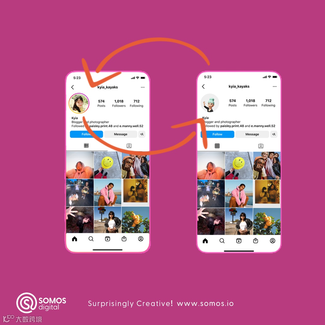 你可以选择两张图片作为ins头像展示,比如一张头像图片和一张非头像图片,新的展示方式会自动在你设置的两张头像图片之间切换