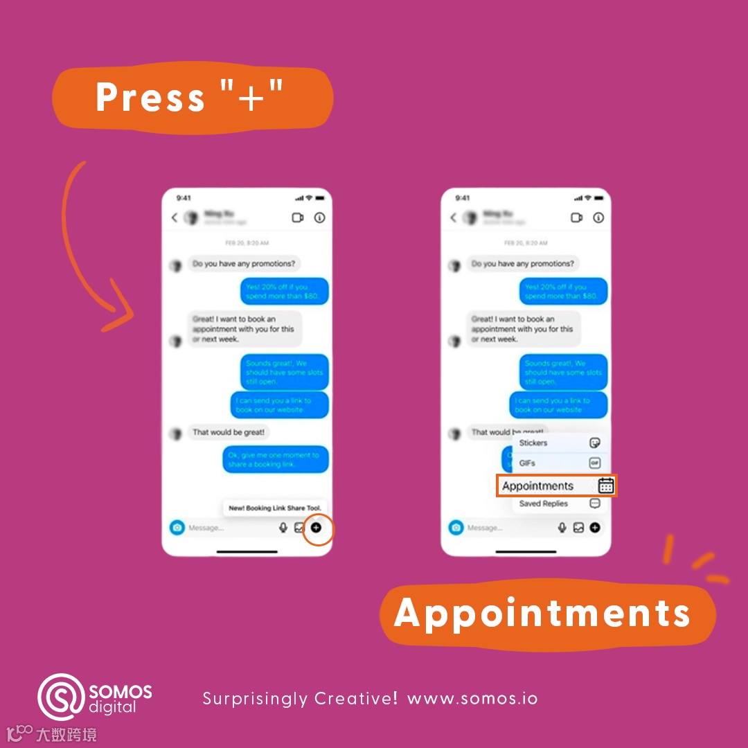 如果你从的是服务型业务(如健身教练、发型师、美甲师),这是一个很好的功能。在私信中创建一个预约消息。用户可以一键将预约信息添加到他们的手机日历中。