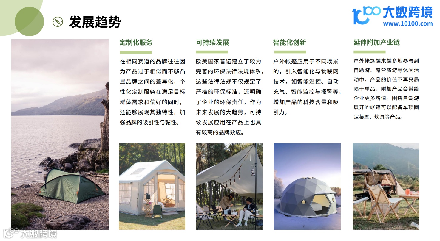 - 企业需要将绿色环保理念融入产品设计和生产过程中,以满足消费者对环保产品的需求。例如,使用可回收材料制作帐篷和睡袋等环保产品将是未来的发展方向。