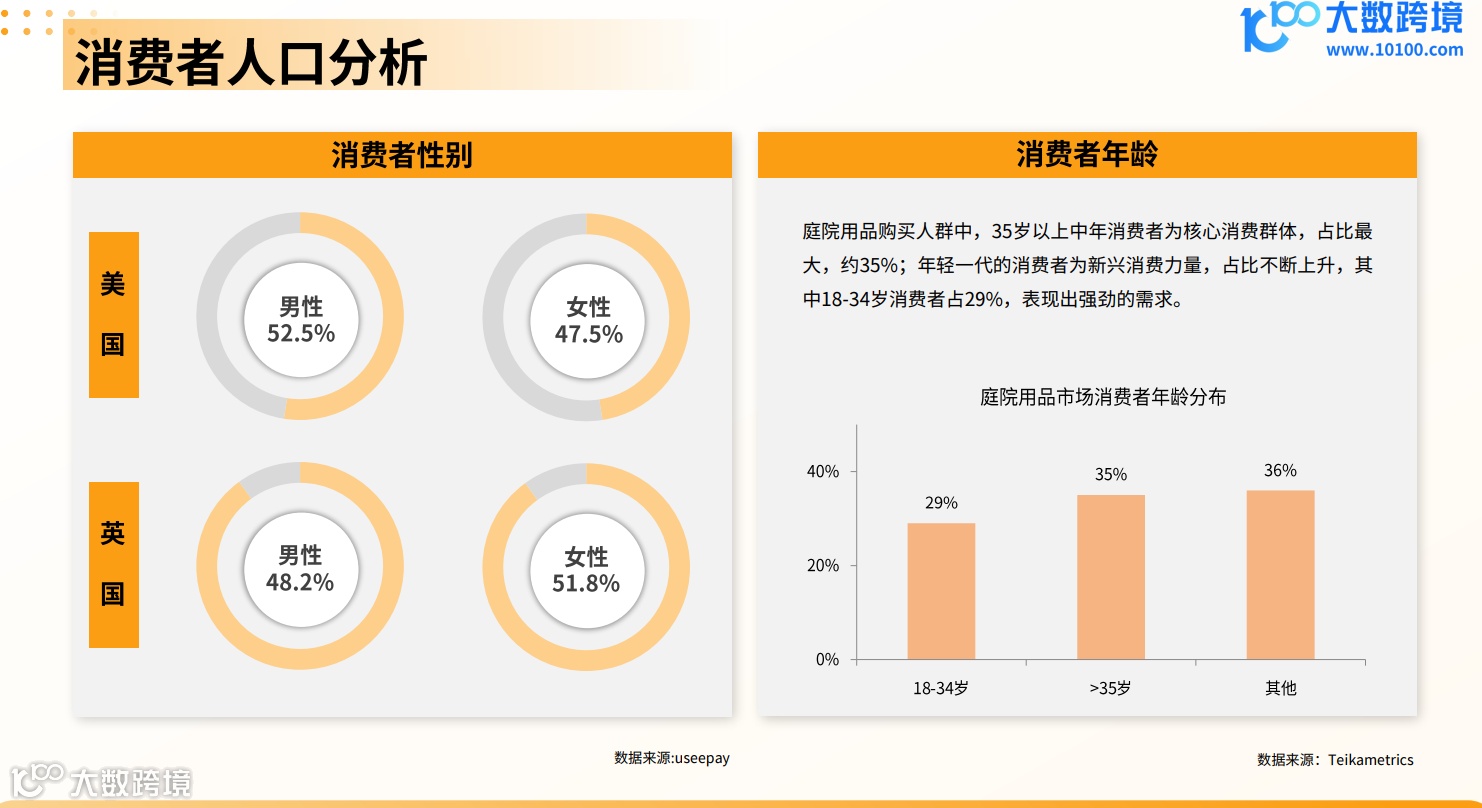 根据报告,全球庭院设备电商市场的消费者人数在2024年将达到9310万,预计到2029年将进一步增长至1.309亿。这一增长主要受到互联网经济发展的推动。同时,35岁以上的中年消费者成为核心消费群体,占比最大,达到35%;而年轻一代(18-34岁)的消费者也表现出强劲的需求和购买力。