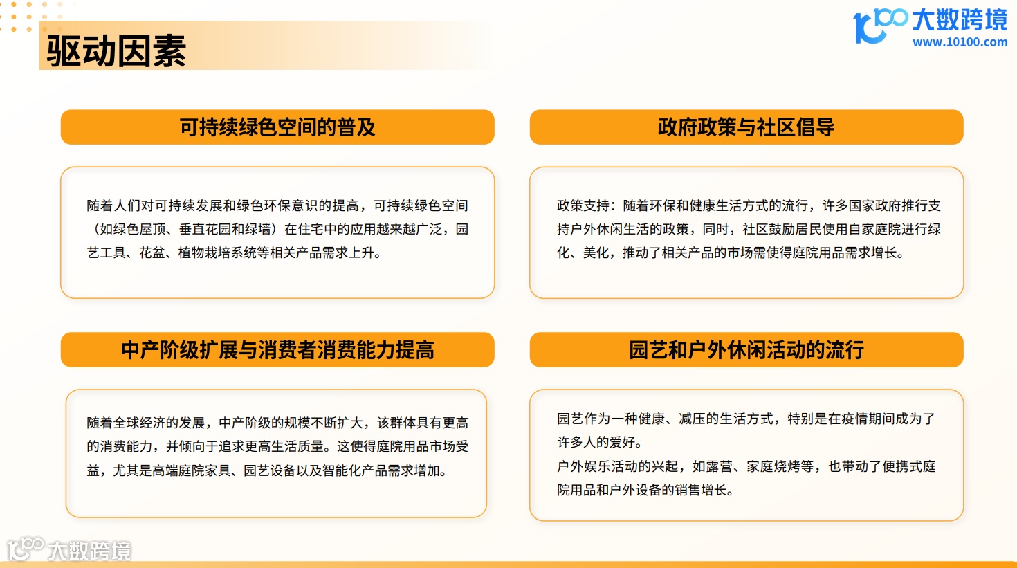 - 市场需求差异:不同国家和地区对庭院用品的设计和功能需求存在明显差异,企业需要灵活应对这些市场差异。
